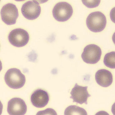 When the clotting cascade is activated before, during or after blood sampling, gray/white threads may be seen in the smear; fibrin strands. Because clotting has occurred, a falsely decreased number of platelets and highly abnormal morphology may be present.