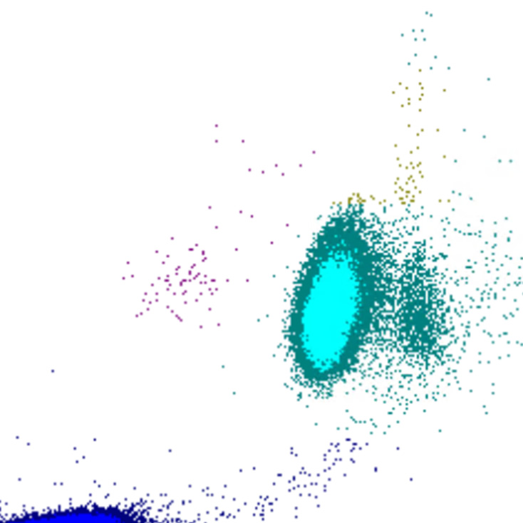 A marked increase in the number of nucleated red blood cells (NRBCs) can be seen here . The orthochromatic erythroblasts lie in this region in particular. The larger NRBC population also suggests the presence of polychromatic erythroblasts. Erythroblastosis occurs with greatly increased erythropoiesis and is frequently seen in premature infants, in transfusion-dependent hemoglobinopathies and after substantial blood loss.