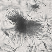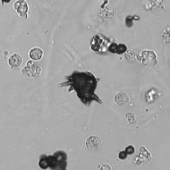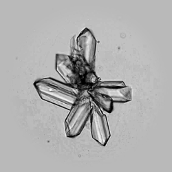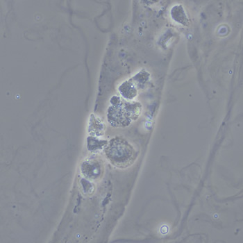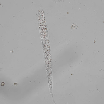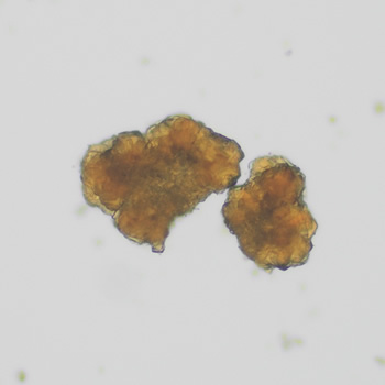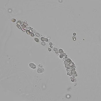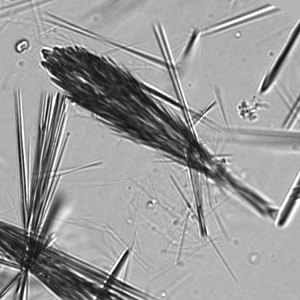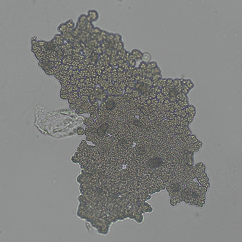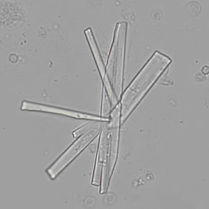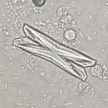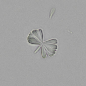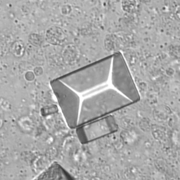 The sediment is examined at 400x magnification (=1 field of view). The most commonly used techniques are brightfield, phase-contrast, and polarization. These different techniques allow certain structures to be more visible or distinguishable; for example, hyaline casts are barely visible with brightfield microscopy but are clearly seen with phase contrast. Where available, this online reference offers the possibility to view different elements with these techniques.