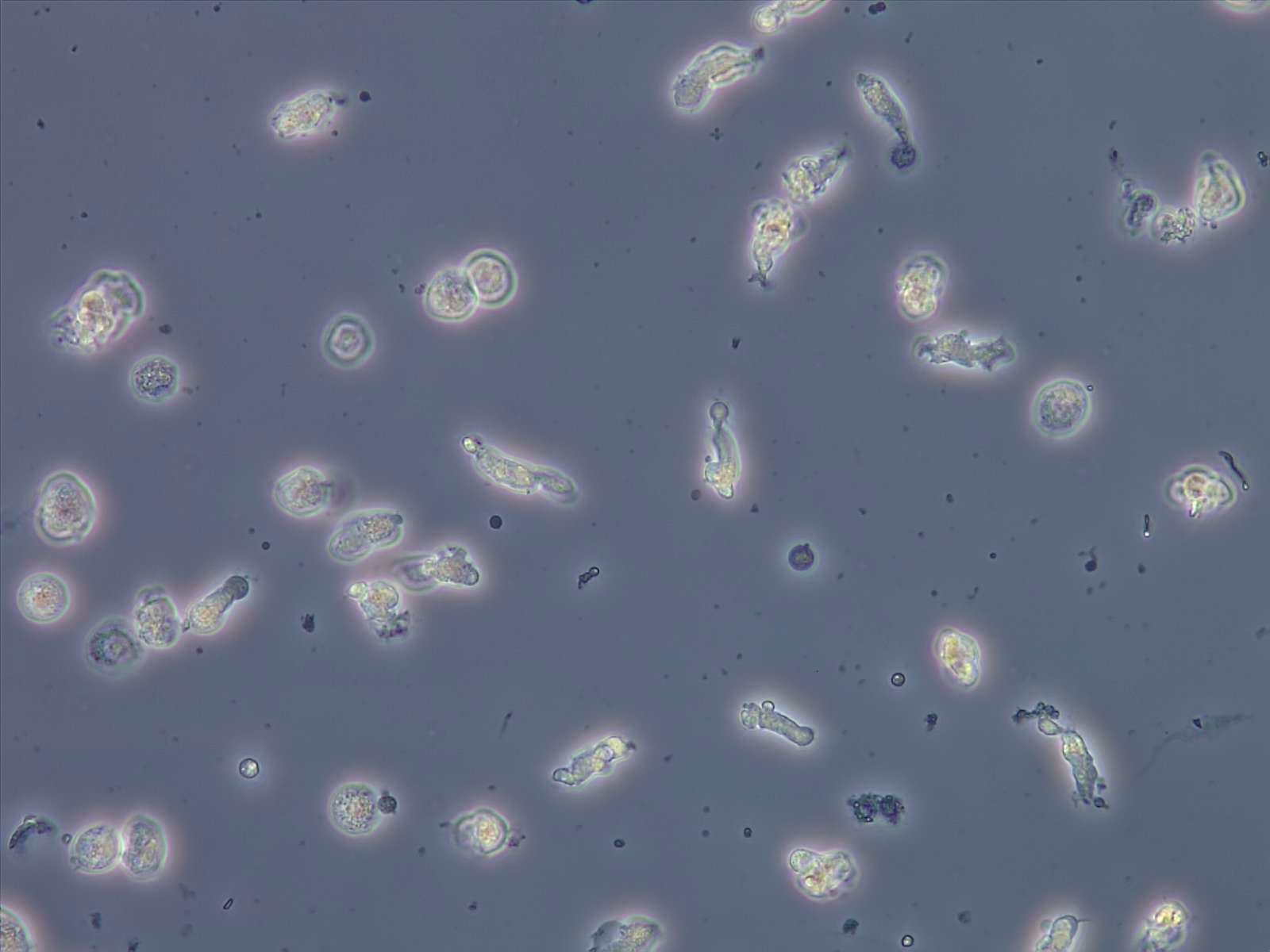 Leukocytes in the urine are usually granulocytes. Leukocyturia is defined as more than >5 leukocytes per field of view (400x magnification). Usually leukocyturia indicates a urinary tract infection, especially when bacteria are also found and when other symptoms of urinary problems are present. However, granulocytes in the urine can also be found in sterile inflammation such as glomerulonephritis.