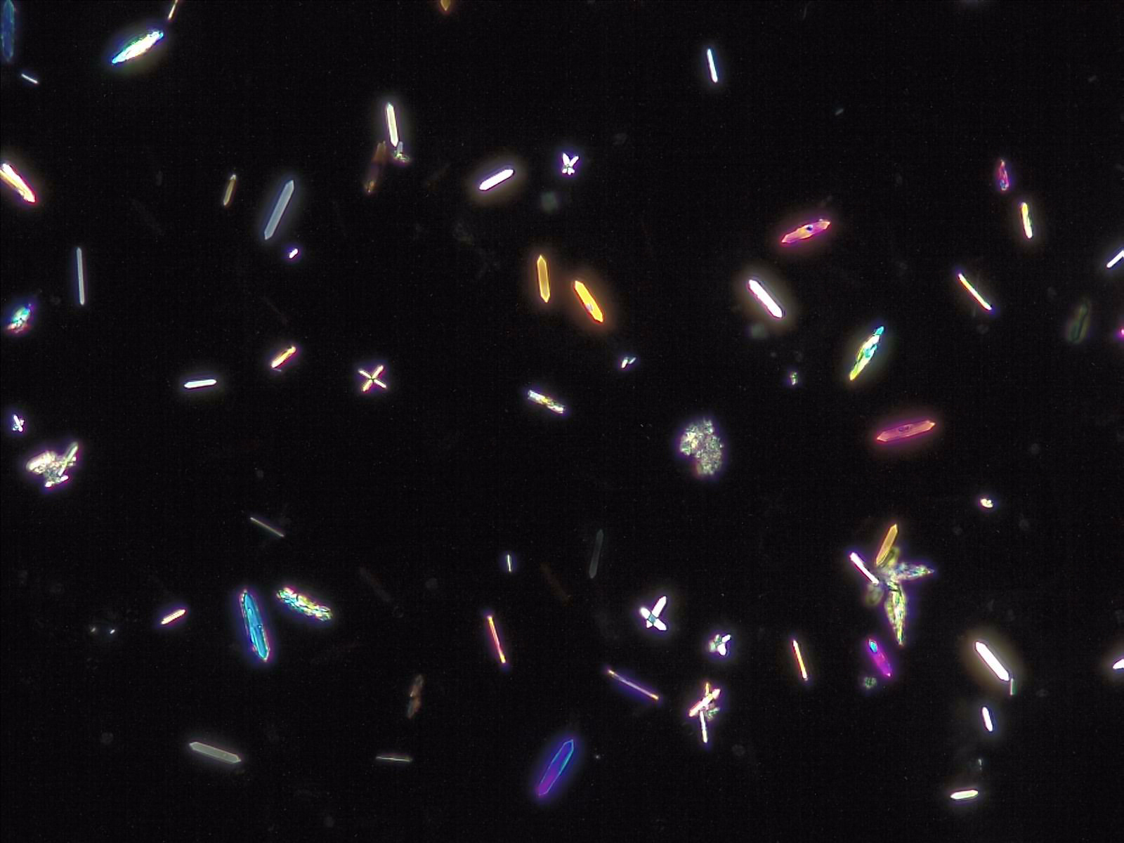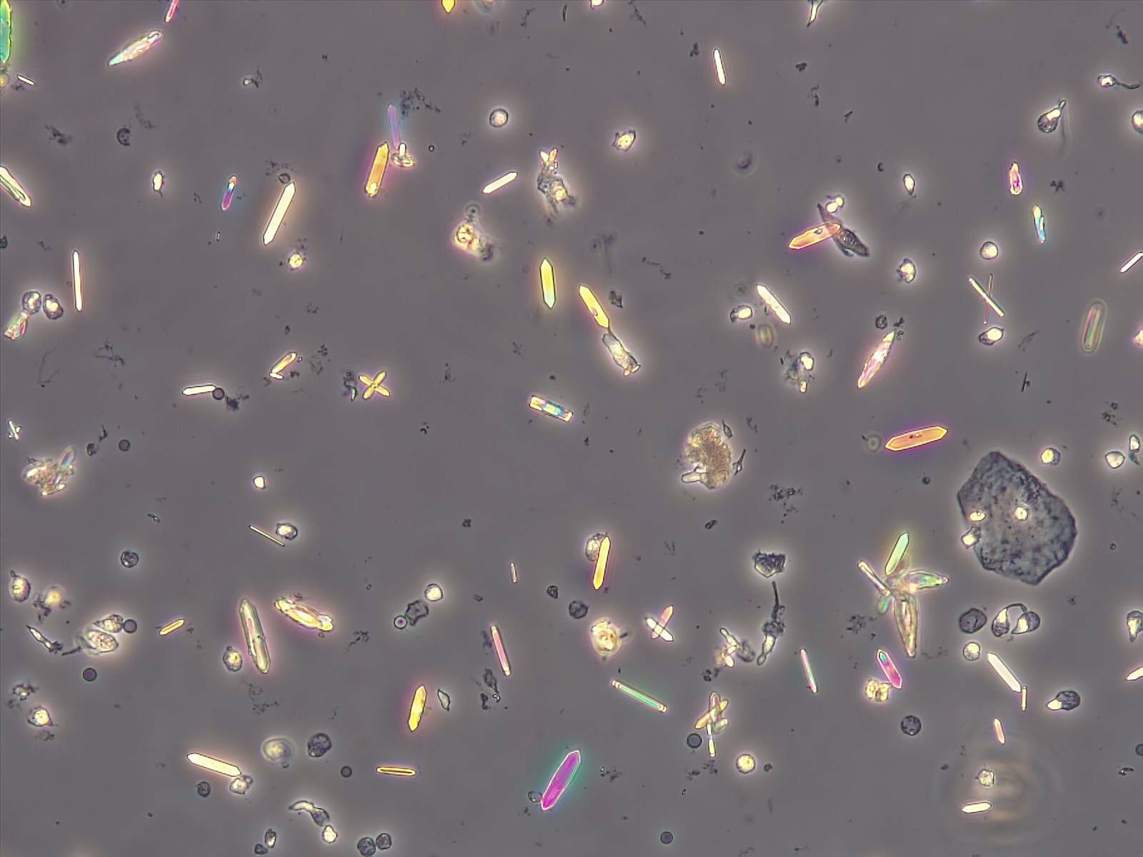 A rare cause of calcium oxalate monohydrate crystalluria is accidental or intentional ingestion of ethylene glycol. This substance is found in antifreeze products, among others, and after ingestion is converted in the liver to glycolate, glyoxalate and eventually oxalate. These metabolites can lead to multisystem disease as calcium oxalate monohydrate crystals precipitate in various organs such as the brain, kidneys, lungs and heart.