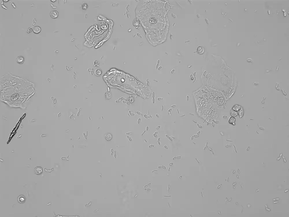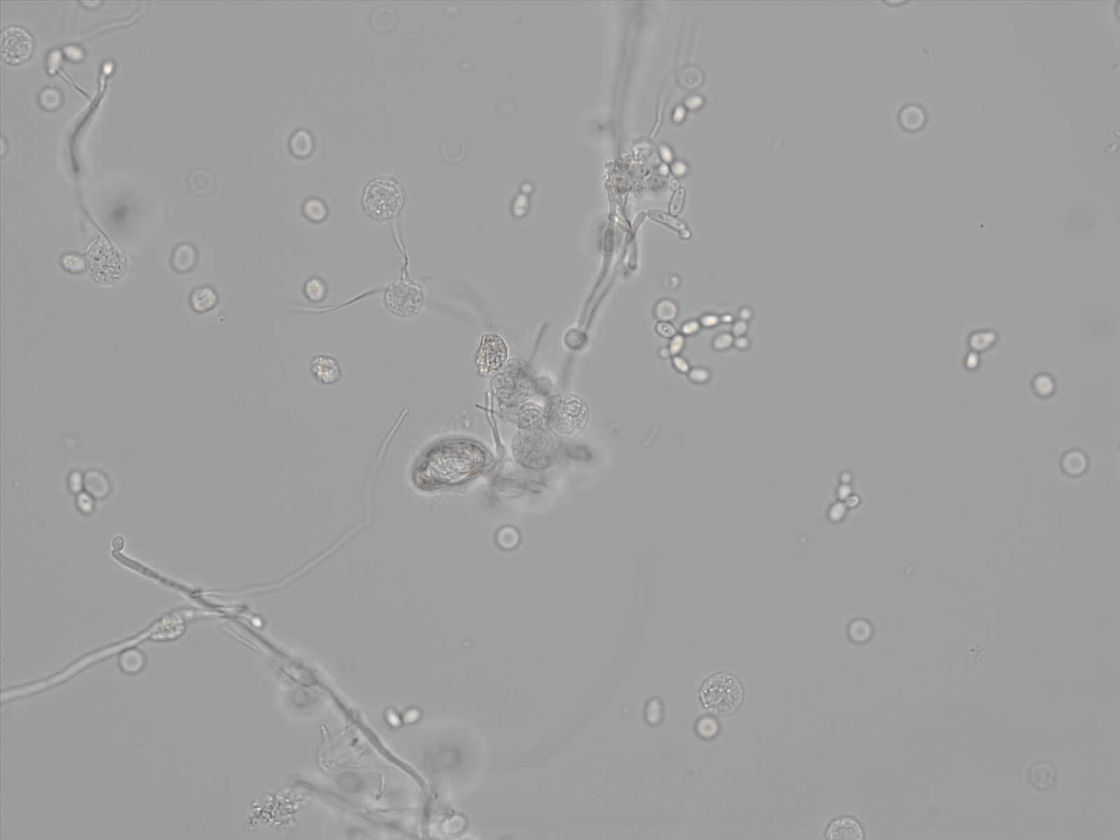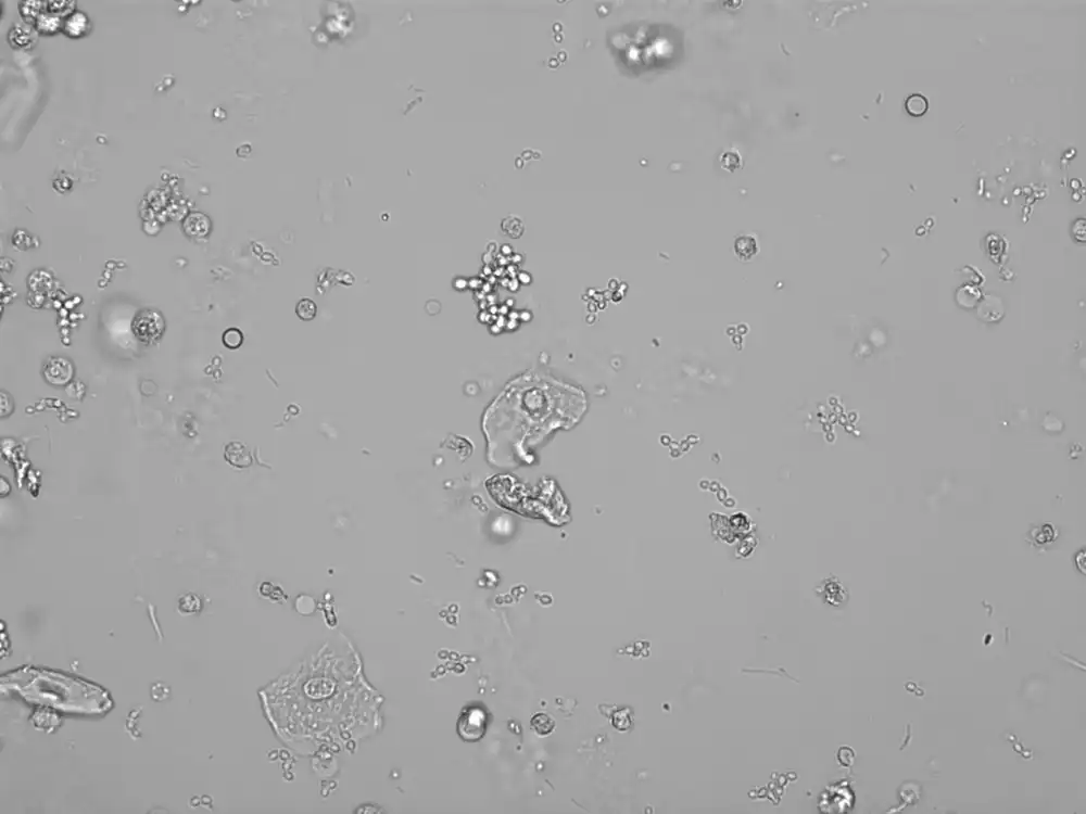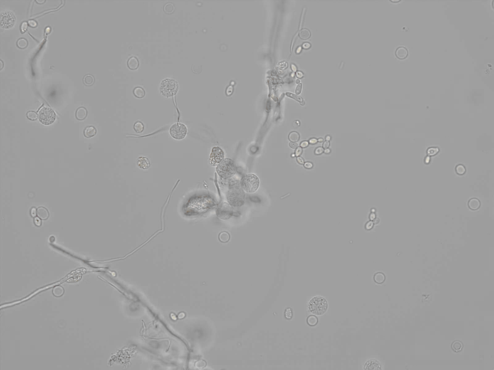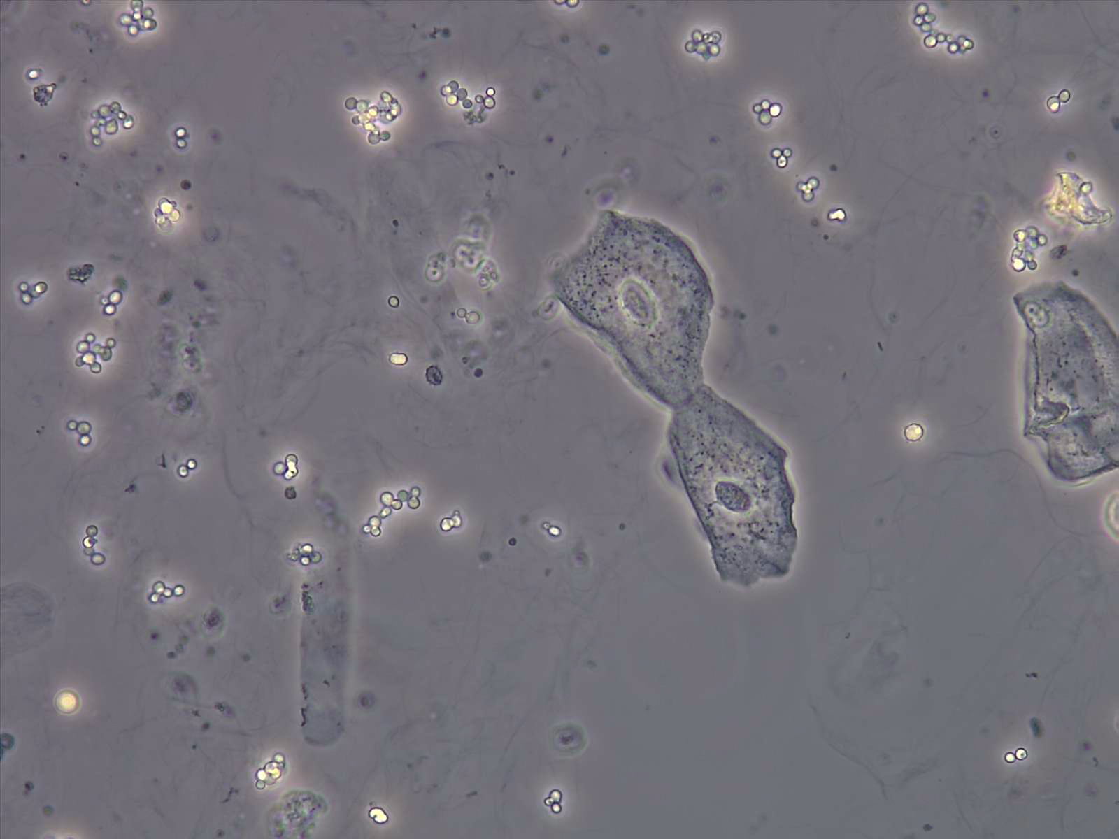 Under the microscope, yeast is often recognized by its typical yeast straightening (roundish cells) and fungal threads (hyphae), which look like thin thread-like structures. Yeast cells may appear in clusters or chains, depending on the type of infection. Precise differentiation based on urine is often not possible.