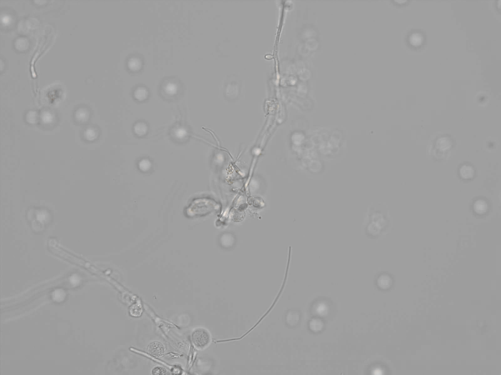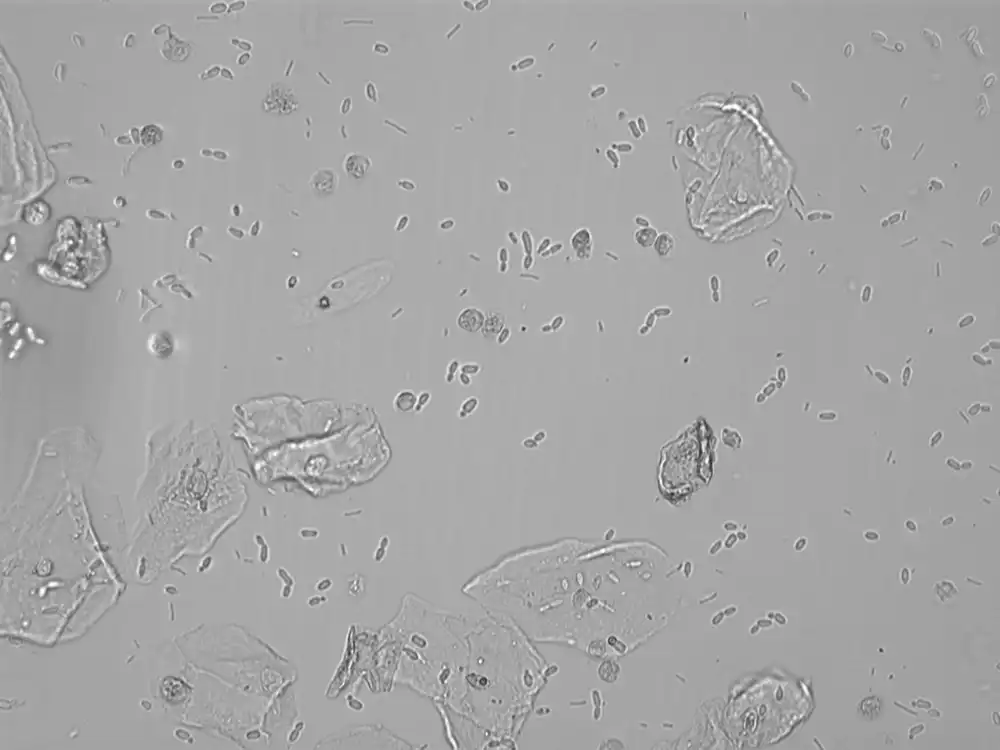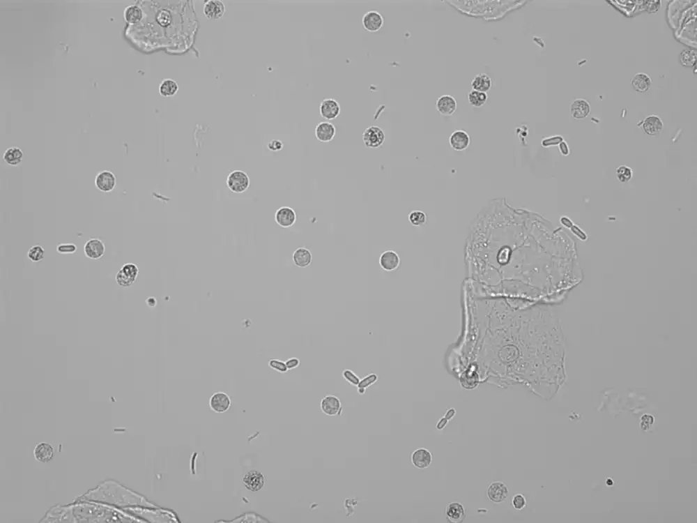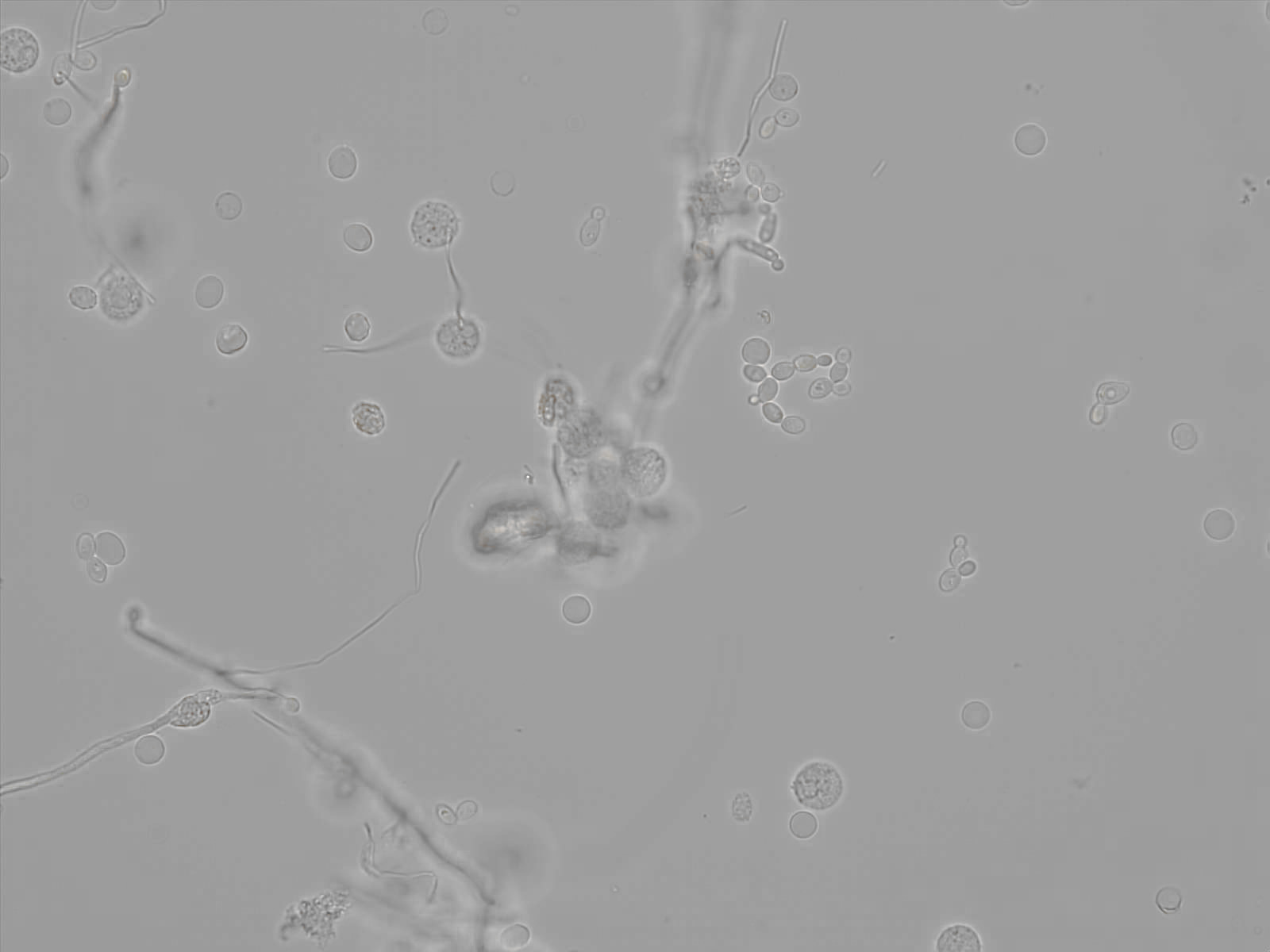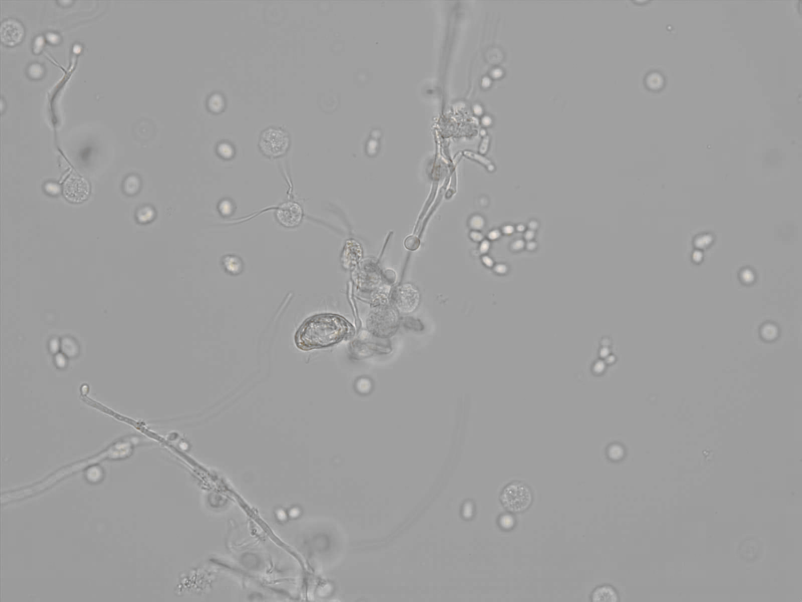 Under the microscope, yeast is often recognized by its typical yeast straightening (roundish cells) and fungal threads (hyphae), which look like thin thread-like structures. Yeast cells may appear in clusters or chains, depending on the type of infection. Precise differentiation based on urine is often not possible.