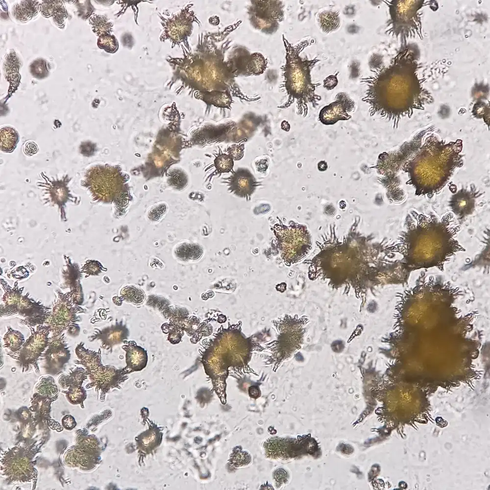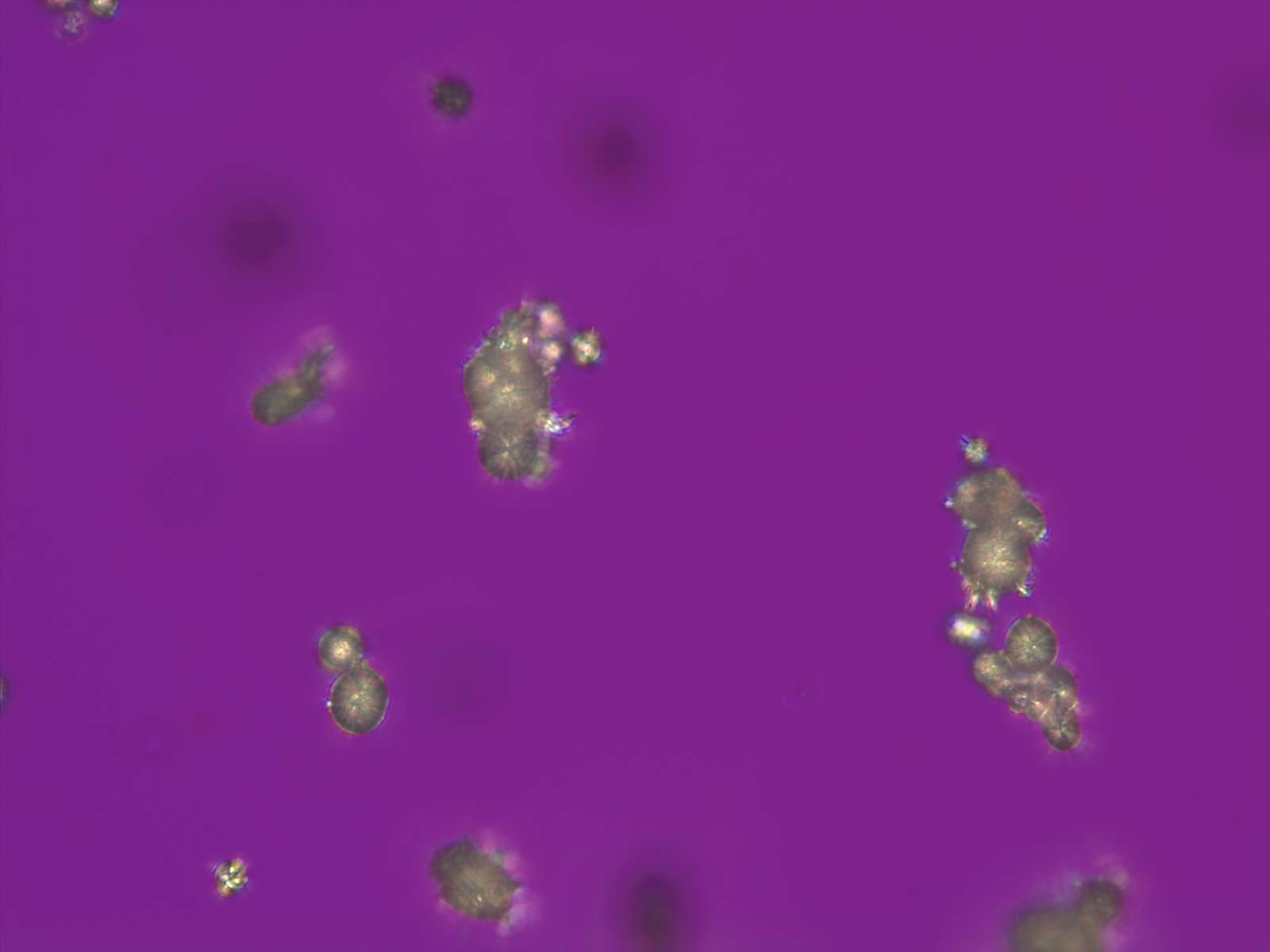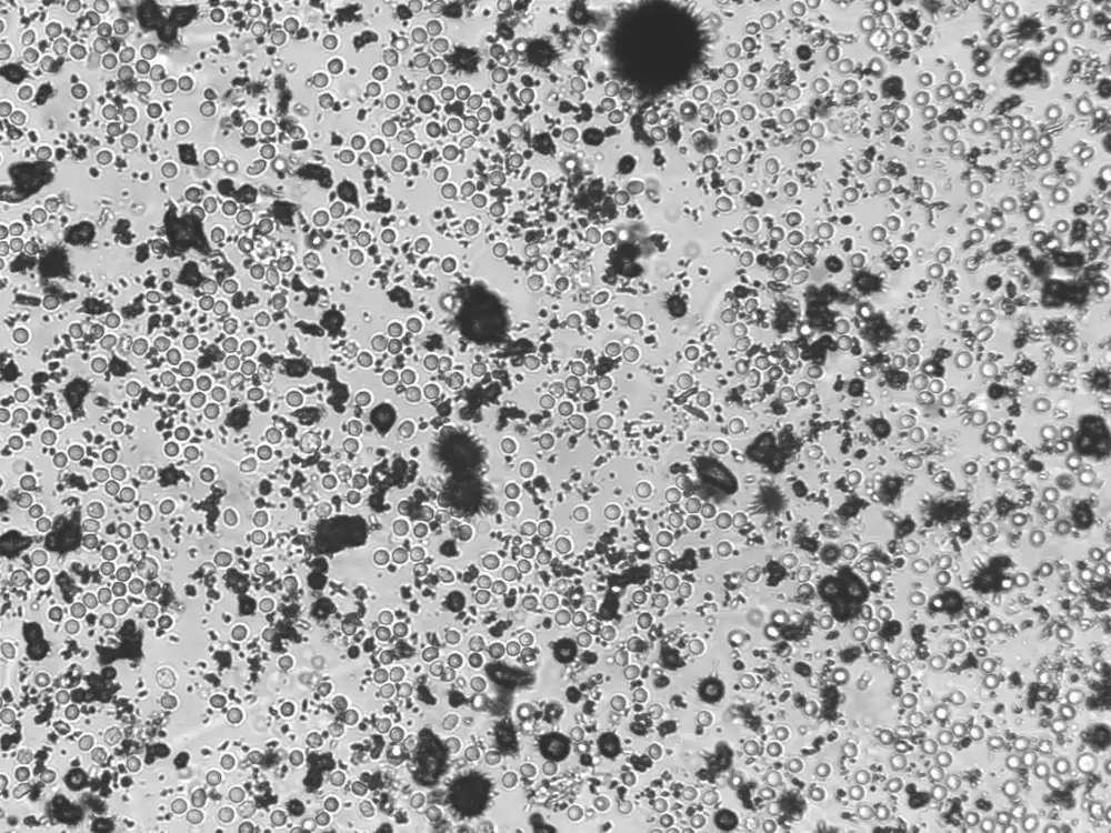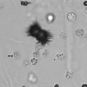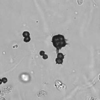 Ammoniumuraatkristallen zijn zeldzame kristallen die voorkomen in alkalische of neutrale urine, meestal bij aanwezigheid van ammoniak, geproduceerd door urease-producerende bacteriën zoals Proteus of Ureaplasma. Ze hebben een kenmerkend uiterlijk: geel- tot bruingekleurde, bolvormige structuren met stekelige uitsteeksels (“doornen”). Deze kristallen ontstaan vaak in urine die langdurig heeft gestaan, of in urine met een hoog ammoniakgehalte, bijvoorbeeld bij een urineweginfectie. Ze vertonen sterke birefringentie onder gepolariseerd licht, maar zijn klinisch meestal van geringe betekenis. Visueel kunnen ze worden verward met onder andere leucinekristallen, die eveneens geelbruin zijn, maar een radiaal, concentrisch patroon vertonen zonder uitsteeksels.