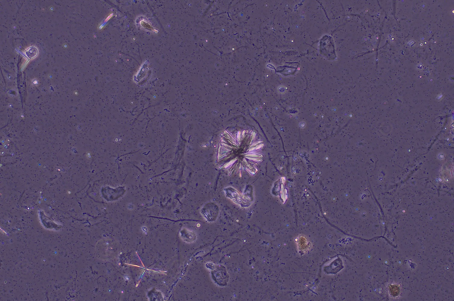 Tripelfosfaat, ook bekend als struviet of magnesiumammoniumfosfaat (MgNH₄PO₄·6H₂O), worden frequent aangetroffen in alkalische urine en zijn typisch geassocieerd met urineweginfecties veroorzaakt door urease-producerende bacteriën zoals Proteus, Klebsiella, Pseudomonas, Staphylococcus en Ureaplasma urealyticum. Deze bacteriën zetten ureum in de urine om tot ammoniak, wat de pH van de urine verhoogt naar neutrale of alkalische waarden. De hogere pH bevordert de neerslag van struviet.