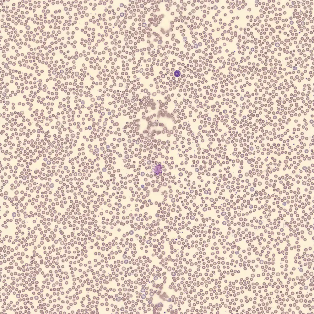 . Bij de mens zou dit beeld passen bij een verhoogde erytropoëse tijdens of na een anemie, mogelijk vanwege een ijzergebrek. Bij een konijn is dit echter een volledig normale bevinding.Neutrofielen
